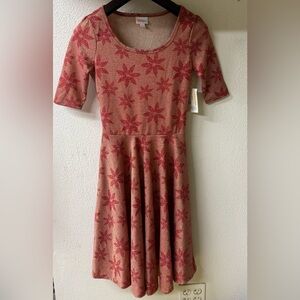 LuLaRoe Nicole Dress Small NWT Red Floral Poinsettia Fit & Flare Scoop Neck SM