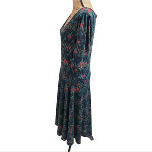 LuLaRoe Nicole Teal Midi Dress Aztec Print Scoop Neck 3/4 Sleeve Casual
