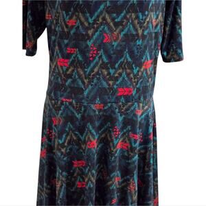 LuLaRoe Nicole Green Multi-color Geometric Arrows Dress Plus Size 2X New