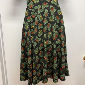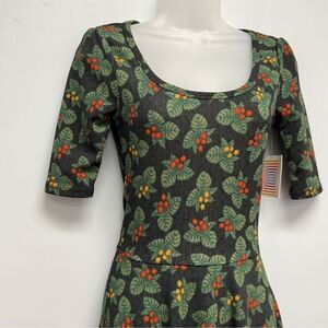 LuLaRoe Nicole L Winter Green Floral Quarter Puff Sleeve Fit Flare A-Line Dress