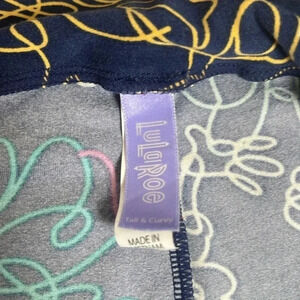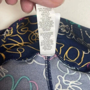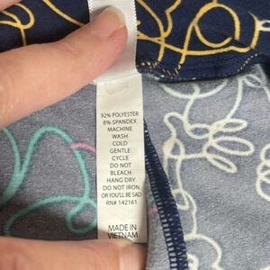 LuLaRoe OS Leggings Disney Minnie Mouse Blue Grafitti Scribble Camrea Pink White