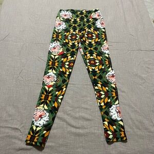 LuLaRoe OS Leggings Green Christmas Star KALEIDOSCOPE SANTA Vintage Retro