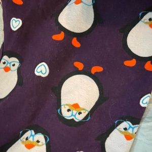 These are a purple background with penguins on them. They are OS size and in great condition.