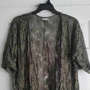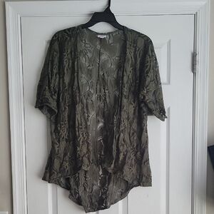 LuLaRoe Olive Green Lace Women Open Front Cardigan
