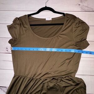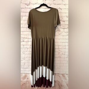 Chic LuLaRoe maxi dress in olive and white. Flowy and stylish for any event.