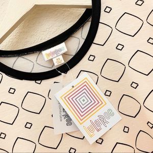 LuLaRoe “Olive” Style Tulip Sleeve Top with Geometric Print, Cream & Bla…