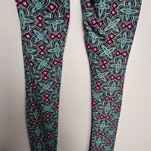 LuLaRoe One Size Multi Color Design women Leggings 142161 Floral Medallion teal pink