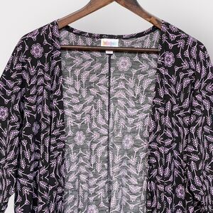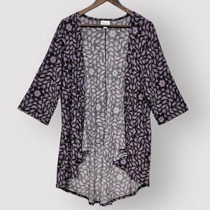 LuLaRoe Open Cardigan Women M Black Purple Arrows Dolman 3/4 Sleeve Stretch
