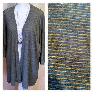 LuLaRoe Open Front High Low Cardigan Shrug. Blue & Yellow Stripe, Size Medium.