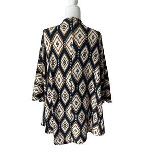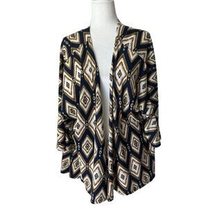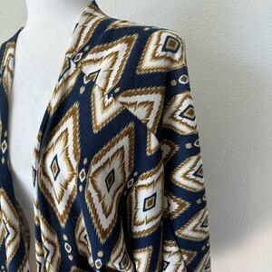 LuLaRoe Open Front Cascade Blue Aztec Kimono Sweater L