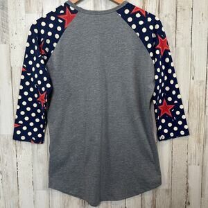 LuLaRoe Patriotic T Shirt Girls Large Woman XS Red Starts White Polka Dots NWOT