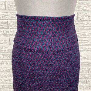 Patterned Cassie midi skirt by LuLaRoe. Size 2XL. Green, navy blue and pink. Not lined. New with Tags.