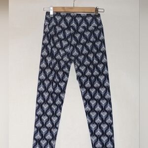 LuLaRoe Peacock Feather Leggings One Size Navy Blue White Rare Unicorn Soft Easy