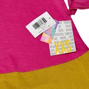 LuLaRoe Perfect T XXS Color Block Hot Pink Yellow Navy Blue Swing Tunic Tee Top