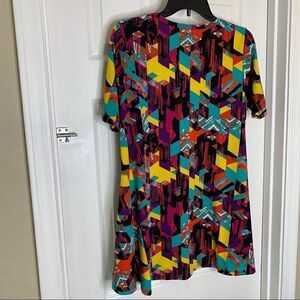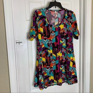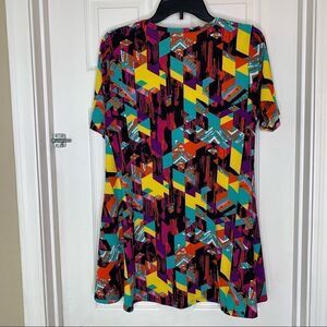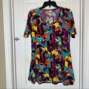 LuLaRoe Perfect T Size Medium Scoop Neck Short Slv Flare Shirt Tunic Geometric