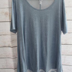 Excellent used condition, T-shirt material, tunic top by LuLaRoe. Light blue with darker blue designs.