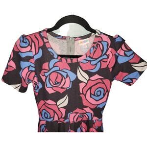 LuLaRoe Pink Floral Amelia Fit & Flare Zip Back Dress Size Small