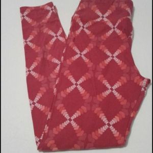 LuLaRoe Pink Hearts Print Valentines Athleisure Lounging Leggings