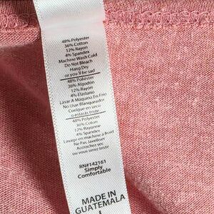Fabric: 48% Polyester, 36% Cotton, 12% Rayon, 4% Spandex. Made in Guatemala.