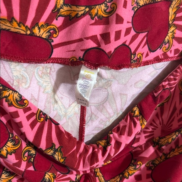 LuLaRoe Pink and Red Heart Pattern Leggings