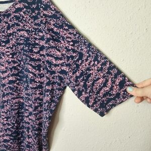 LuLaRoe Polka Dot Irma Tunic Shirt Blue Pink Size M Medium Hi Lo Hem Oversized