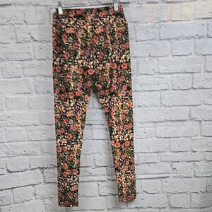 LuLaRoe Poppy One Size (2-10) Butter Soft Legging Pink Orange Floral Print Pants