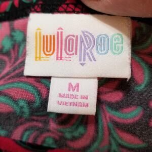 LuLaRoe Red Black Green Pullover Top; Size M; Material - Polyester, Elastane; Care - Machine Wash; Made in Vietnam; Pullover, Short Sleeves, Round Neck, Hi Low Hem, Floral Print,