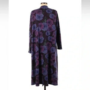 LuLaRoe | Purple Digital Roses Sarah Duster Long Open Front Cardigan Size M