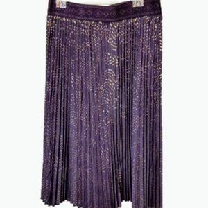 LuLaRoe Purple and Gold Metallic Elegant Jill Pleated Skirt Size Medium