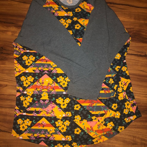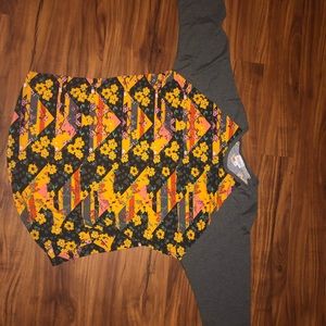 2XL LulaRoe Randy, yellow patterned, with grey sleeves, beautiful pattern. Randy’s do fit more snug