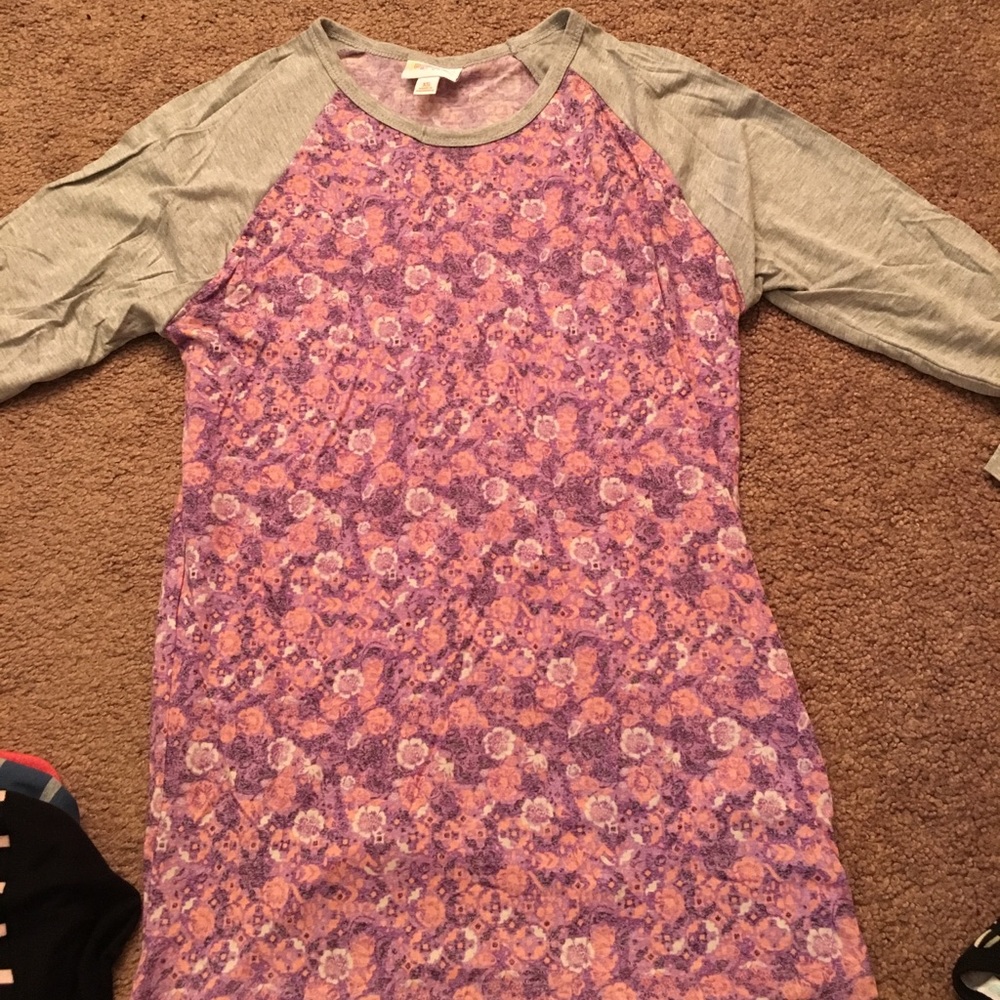 Beautiful LuLaRoe floral Randy with grey sleeves! Florals are light pink, purple, and white.