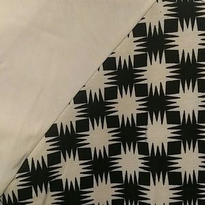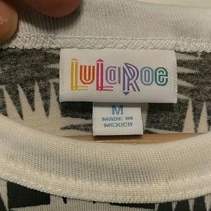LuLaRoe Randy. White and black with a geometric pattern in the center. White sleeves. Randy's have 3/4 length sleeves. NWT.