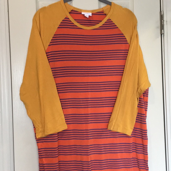 EUC LuLaRoe Randy- orange and blue stripe body with gold sleeves