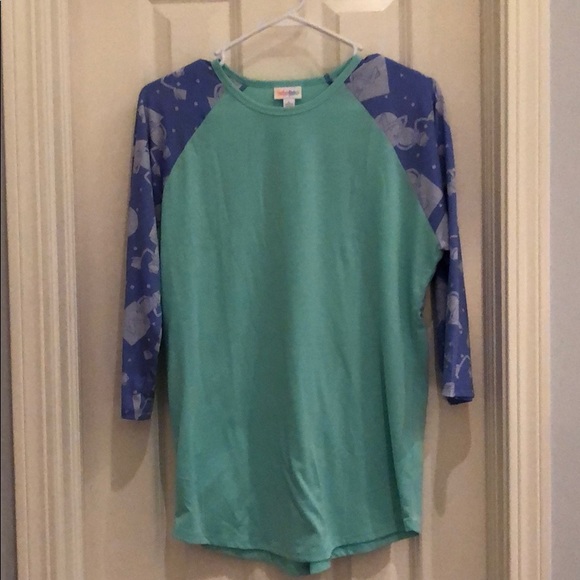 LuLaRoe Disney Kermit the Frog Randy, size large. Light blue base with purple sleeve with Kermit details. Worn once. Washed per care instructions.
