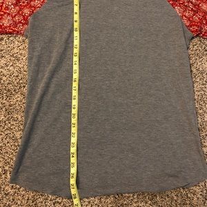 Baseball T - gray shirt with red pattered sleeves. Fits like 14/16