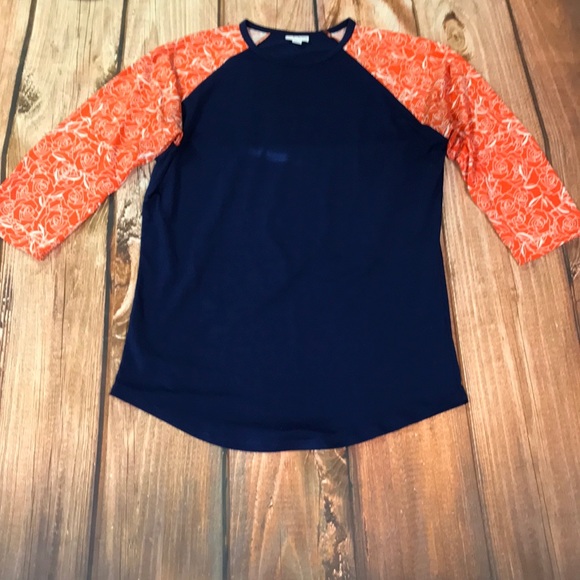 Dark blue with fabulous orange rose sleeves. Raglan style LuLaRoe Randy L