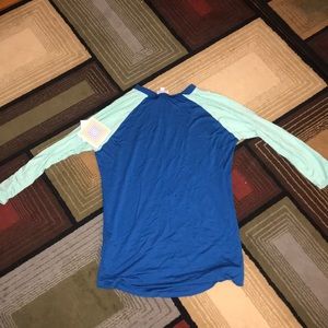 LuLaRoe 3 quarter sleeve Randy shirt. Blue body and turquoise sleeves. Size S. New with tags!