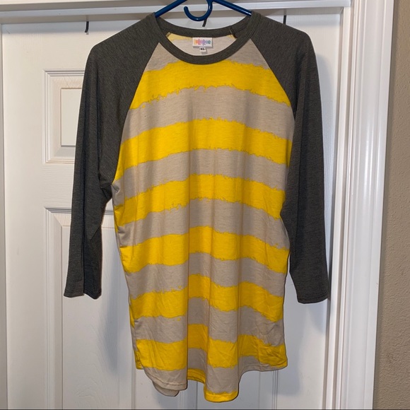 Grey and Yellow Striped Randy Tshirt. 3/4 sleeve.
