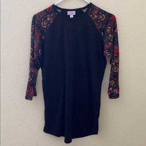 EUC. Worn only a few times. Fits more like a medium. Beautiful rose pattern sleeves with a black base. Cute paired with jean shorts and chucks. 3/4 baseball tee. Washed to LuLaRoe standards.