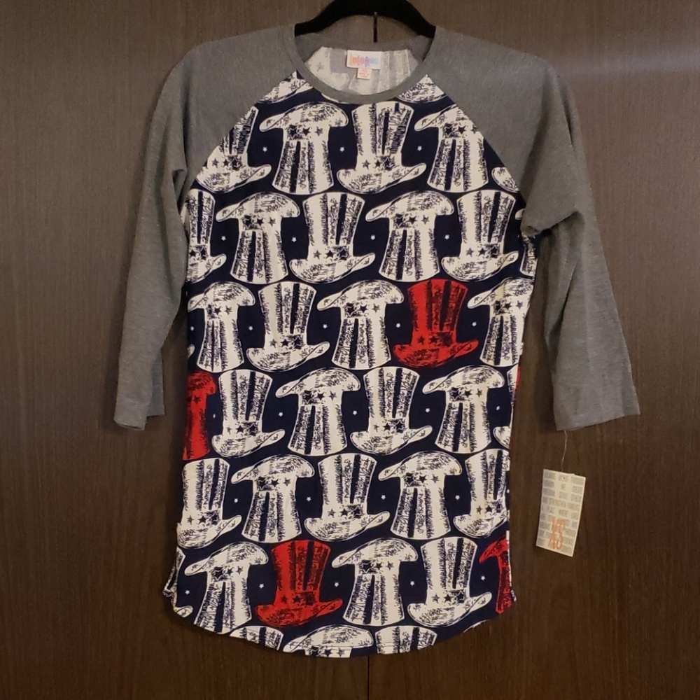 LuLaRoe Randy baseball tee. Great sleeves with 4th of July print on a navy background. New with tags.