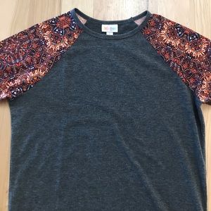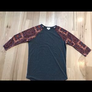 LuLaRoe Randy - three quarter length sleeves. In like new condition - worn maybe twice. Burnt orange/navy color design on arms - super soft and cute.