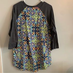 LuLaRoe Randy in Kaliedescope Pattern Size 2XL Raglan Tee - 3/4 Sleeves GUC - Minimal Signs of Wear - Some Pilling