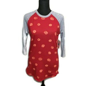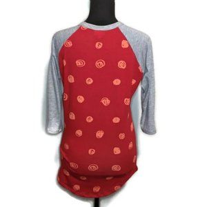 LuLaRoe Randy Grey Sleeves with red body with light swirls and grey sleeves.