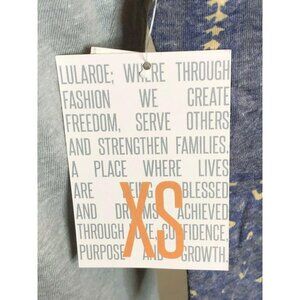 This unisex LuLaRoe XS knit tee resembles a baseball tee with its raglan, mid-length sleeves in a contrasting, patterned fabric. It is everything a t-shirt should be stylish and comfortable.