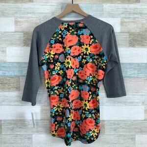 LuLaRoe Randy Baseball Tee Gray Pink Floral Print Womens XS