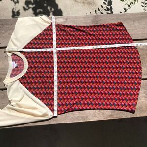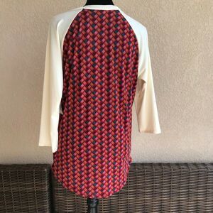 LuLaRoe Randy Baseball Tee Top Basketweave Burgundy Cream Gold Teal Large