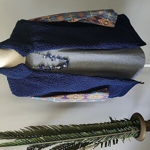 Turquoise, purple, yellow, and red graphic print 3/4 length sleeves