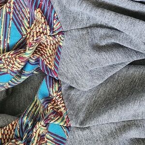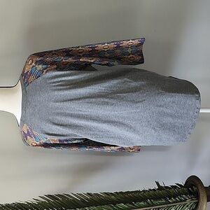 LuLaRoe Randy Gray Raglan Tee with Multicolored 3/4 Sleeves