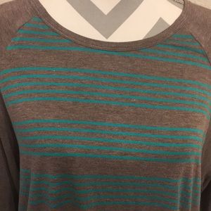 Gray Randy with teal vertical stripes. Perfect comfy tee!