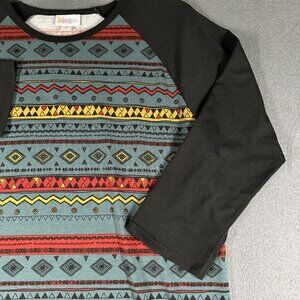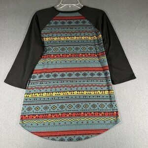 LuLaRoe Randy Shirt Women's Medium Black Aztec Pattern 3/4 Sleeve Raglan Top